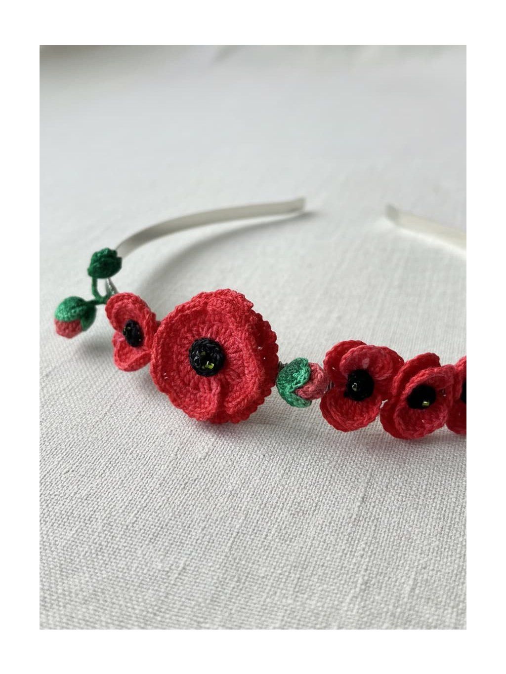 Tato čelenka je spojením přírody, vlčích máků a louky. Je to nádech harmonie ženy a přírodní krásy.