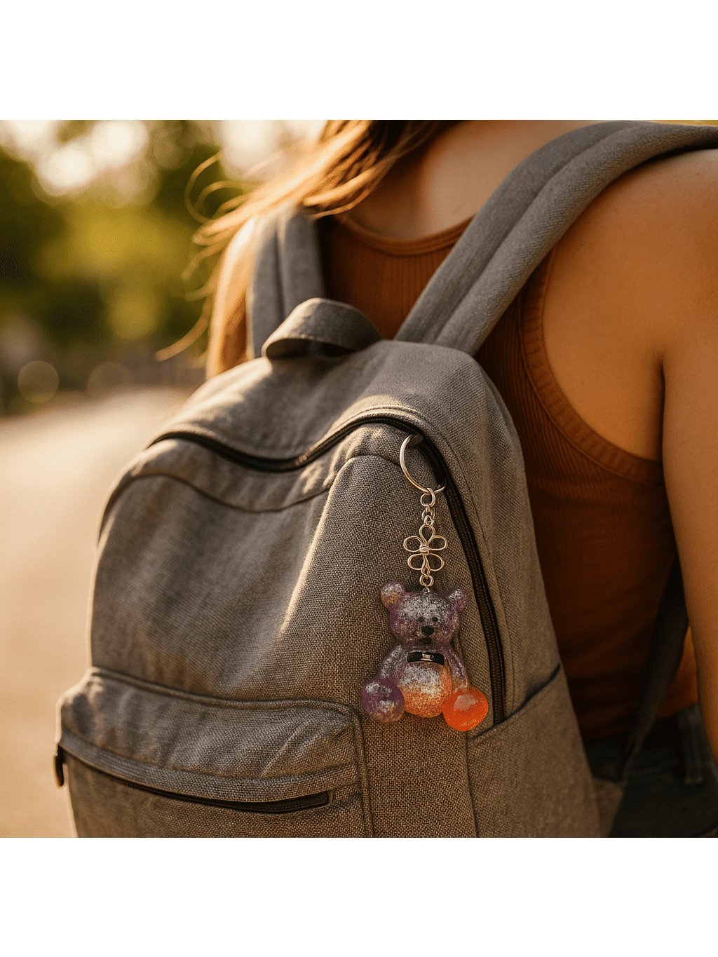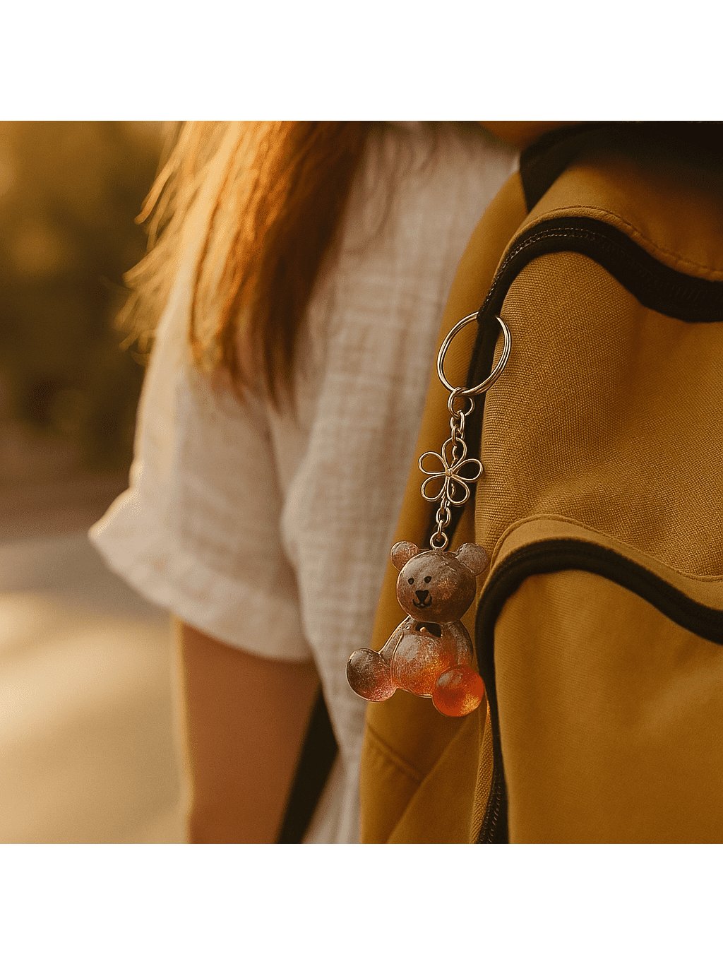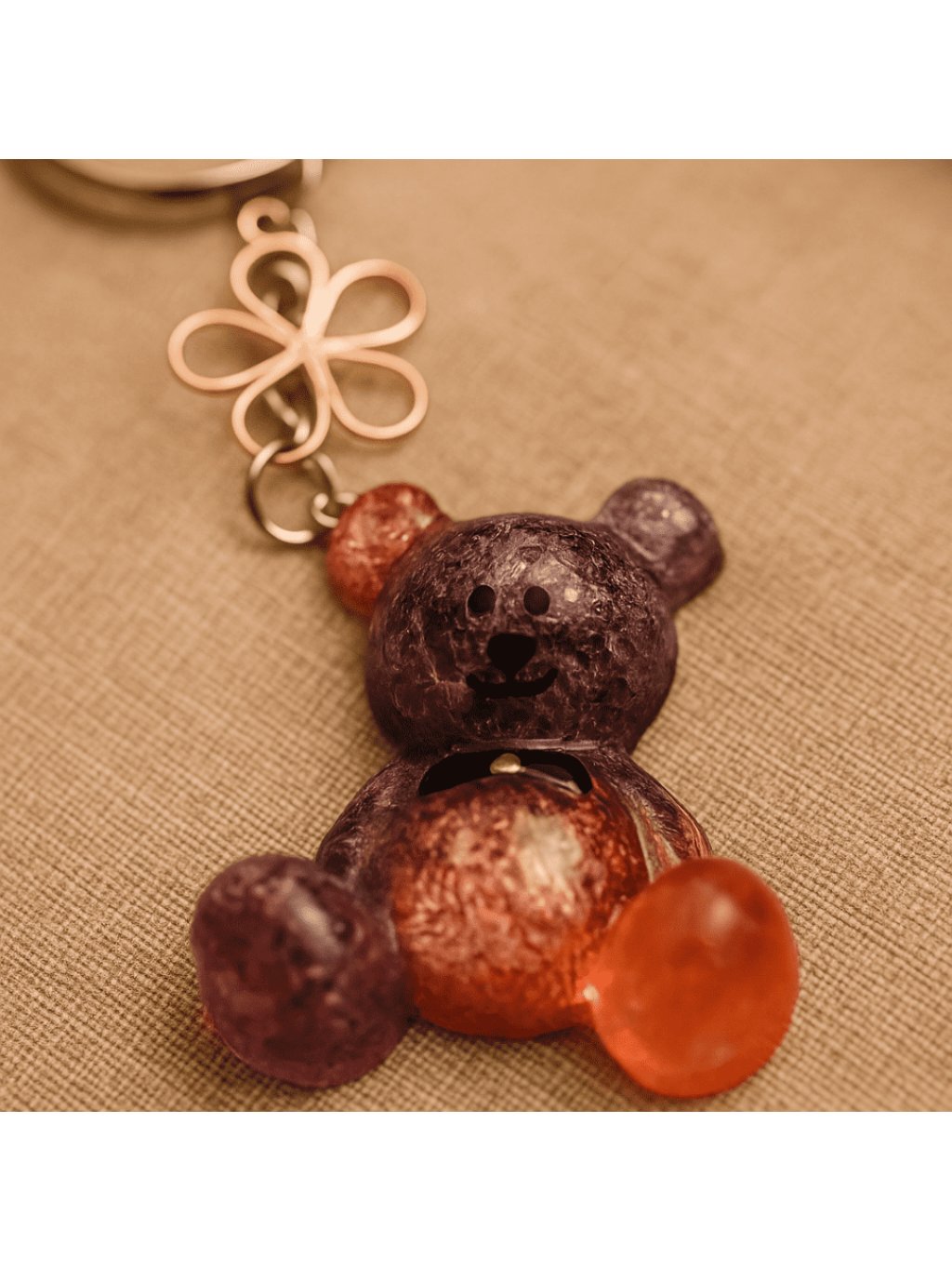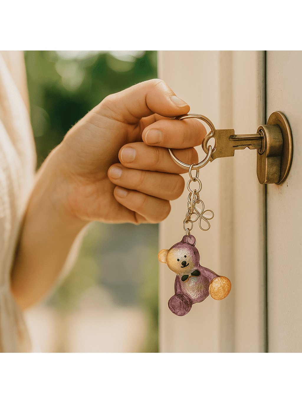 Malé věci dokážou přinést největší radost – a tato klíčenka z pryskyřice ve tvaru medvídka je toho důkazem.