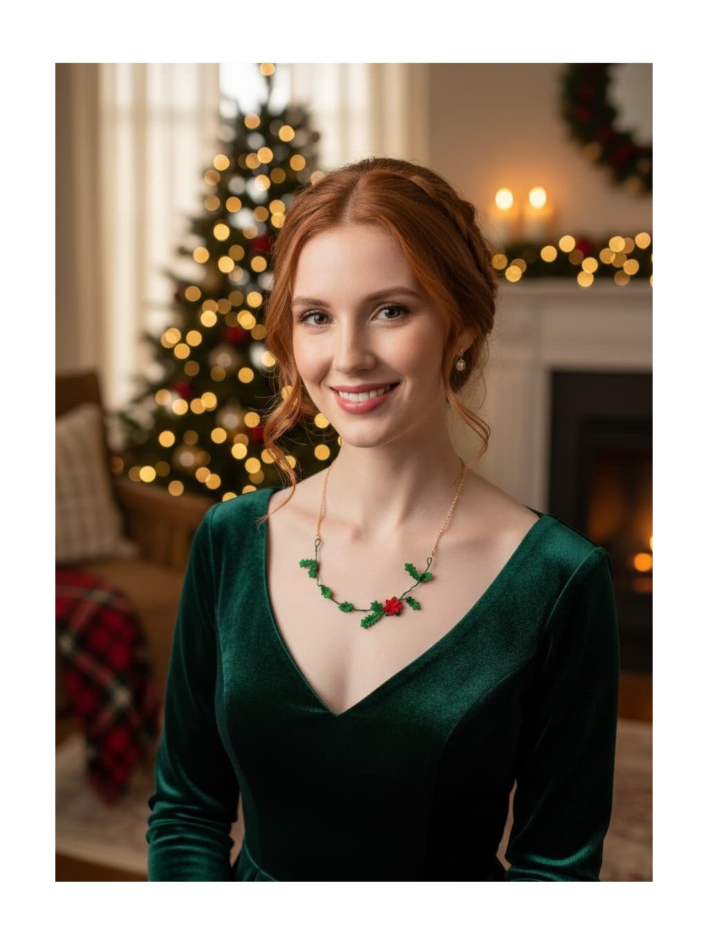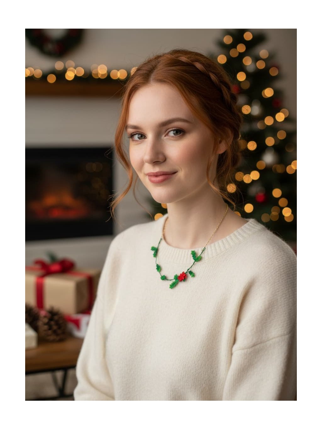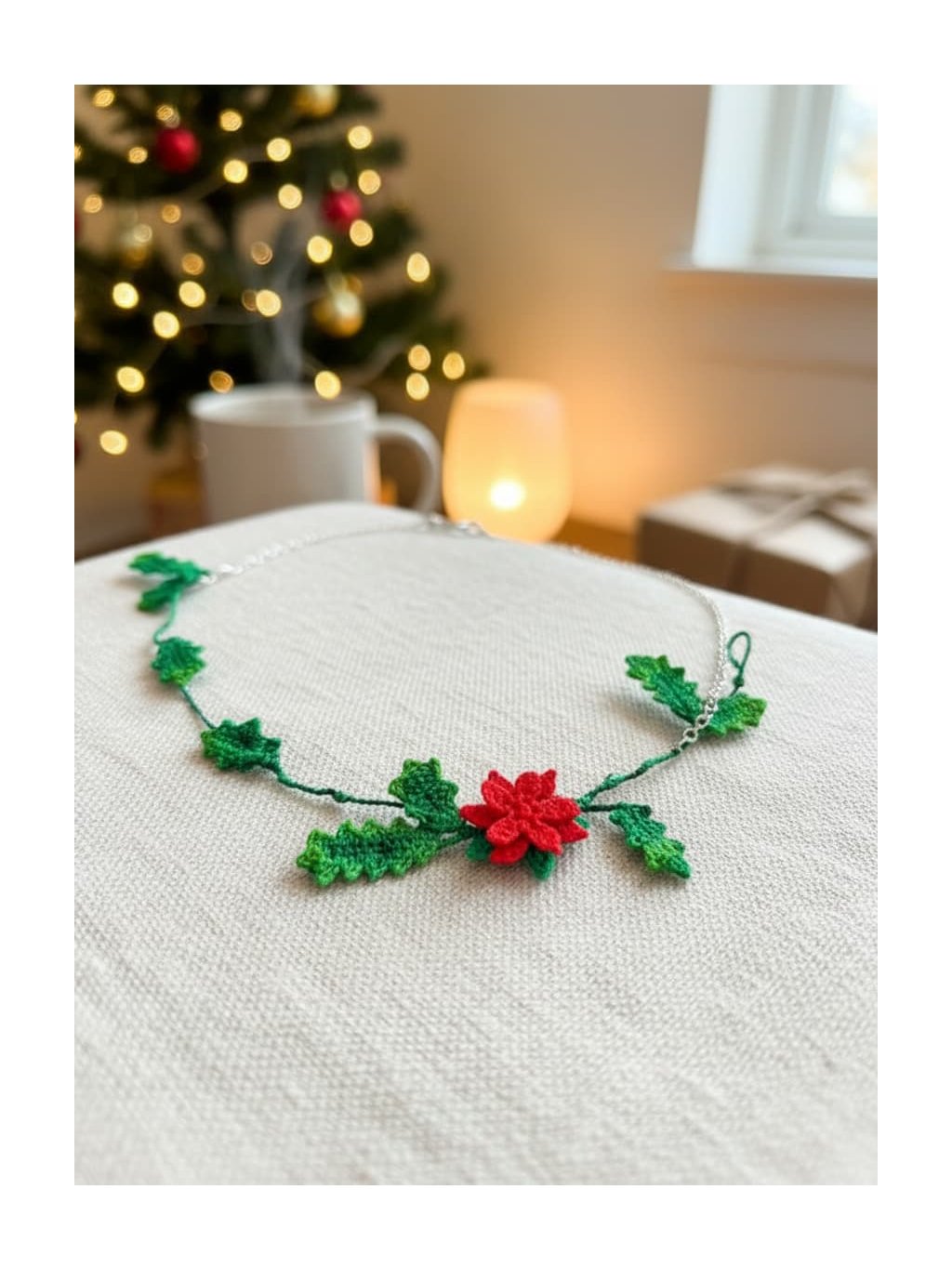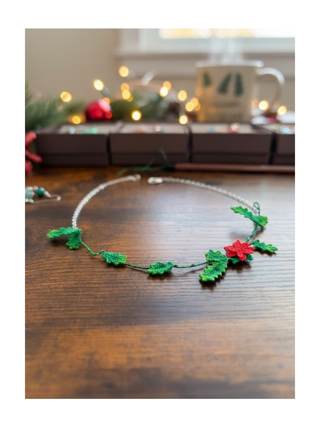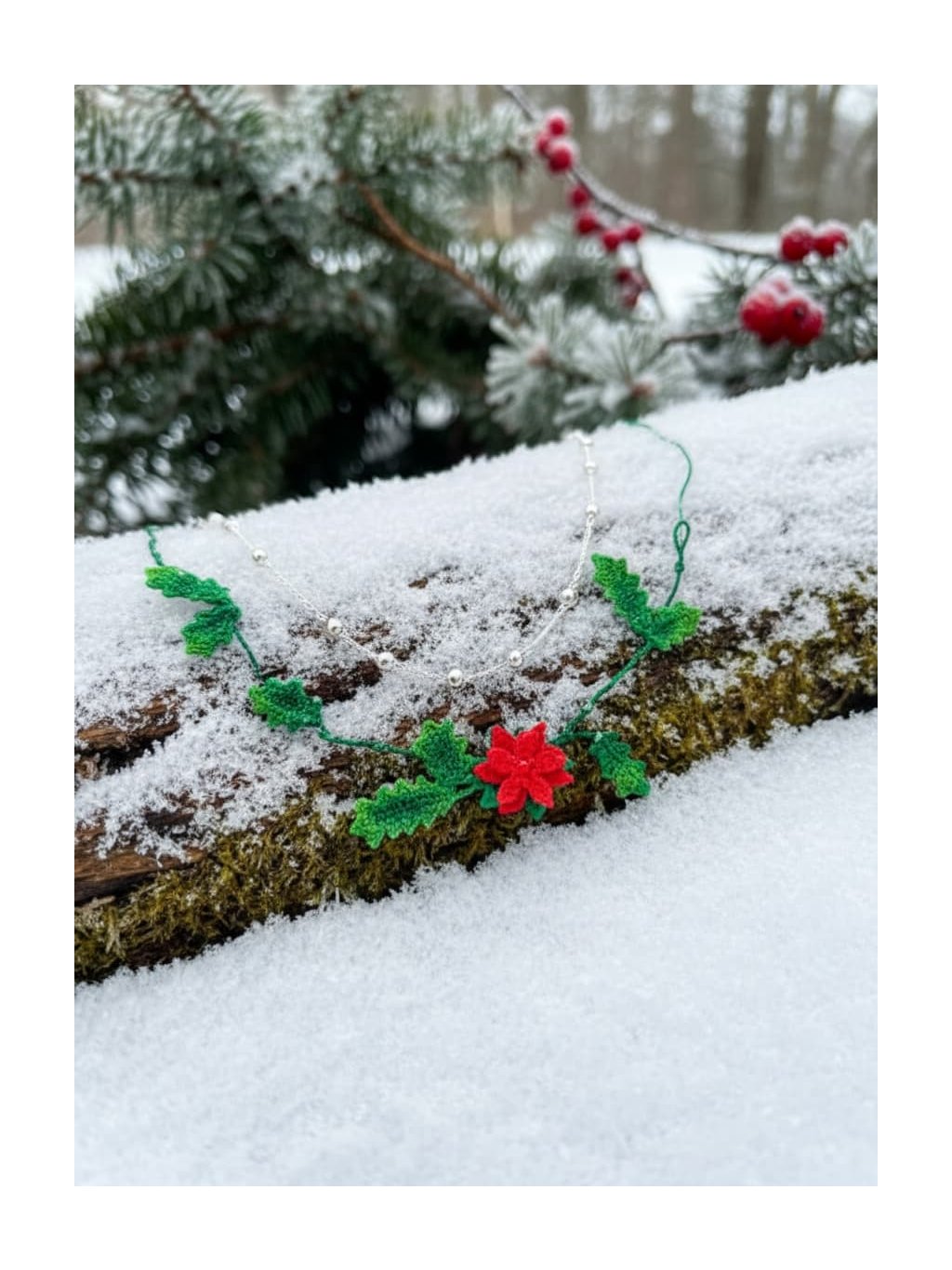 Náhrdelník cesmína - vánoční unikát
