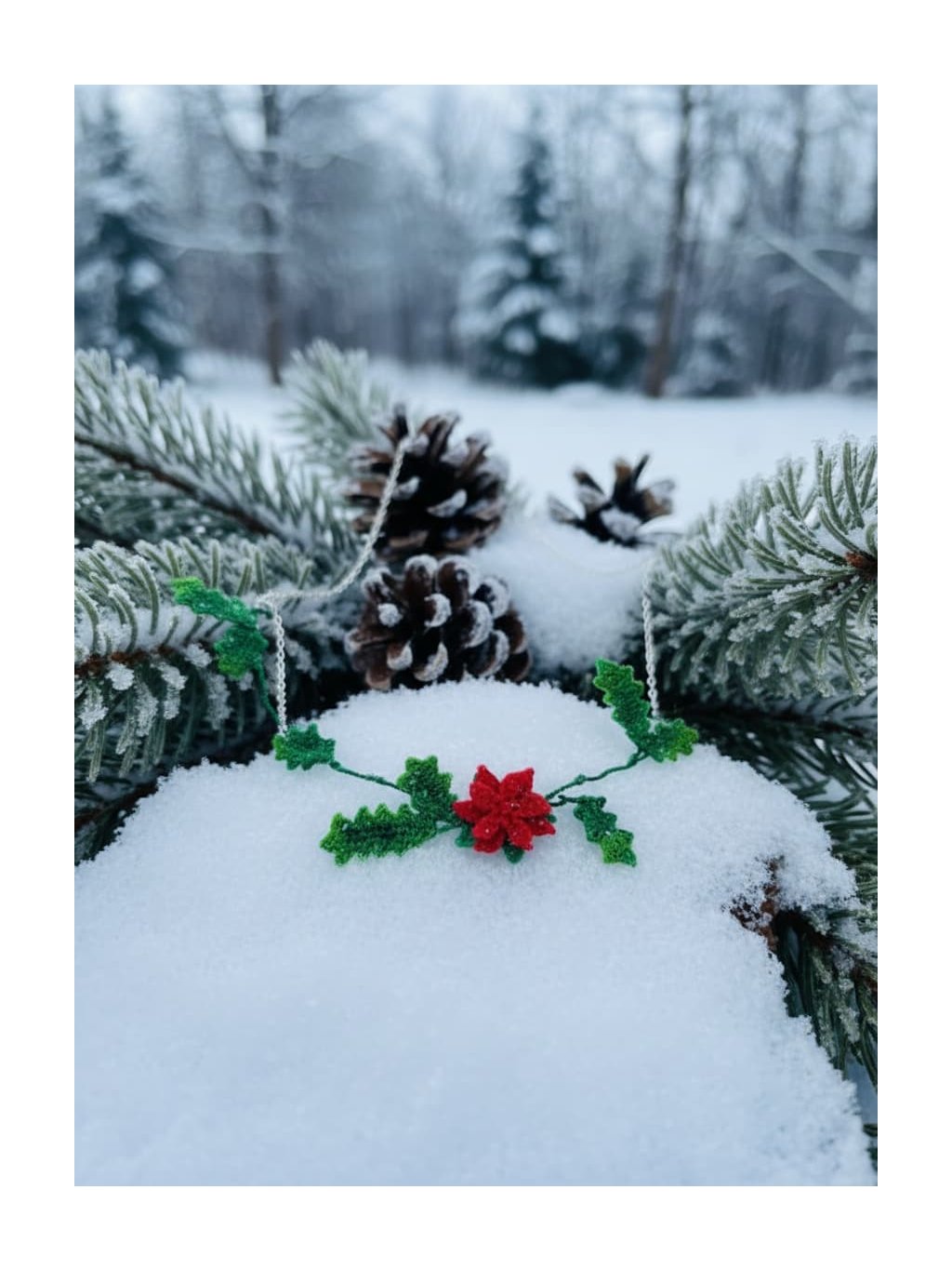 Představte si náhrdelník, který v sobě nese příběh starý jako lidstvo samo... Cesmína není jen krásnou zimní rostlinou - je to symbol nesmrtelné síly, která žije v každé z nás.