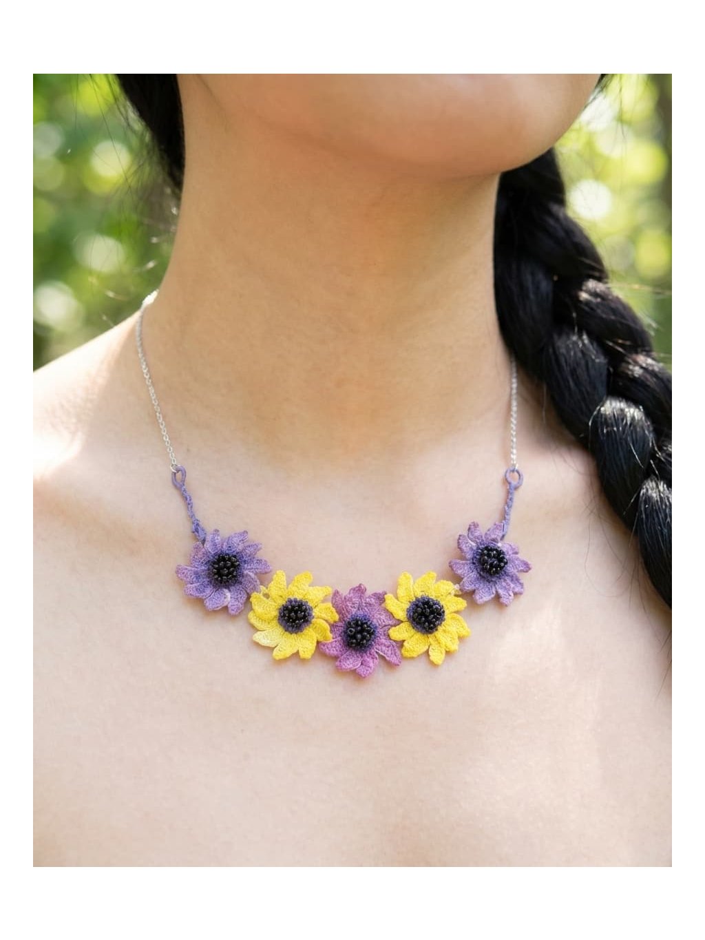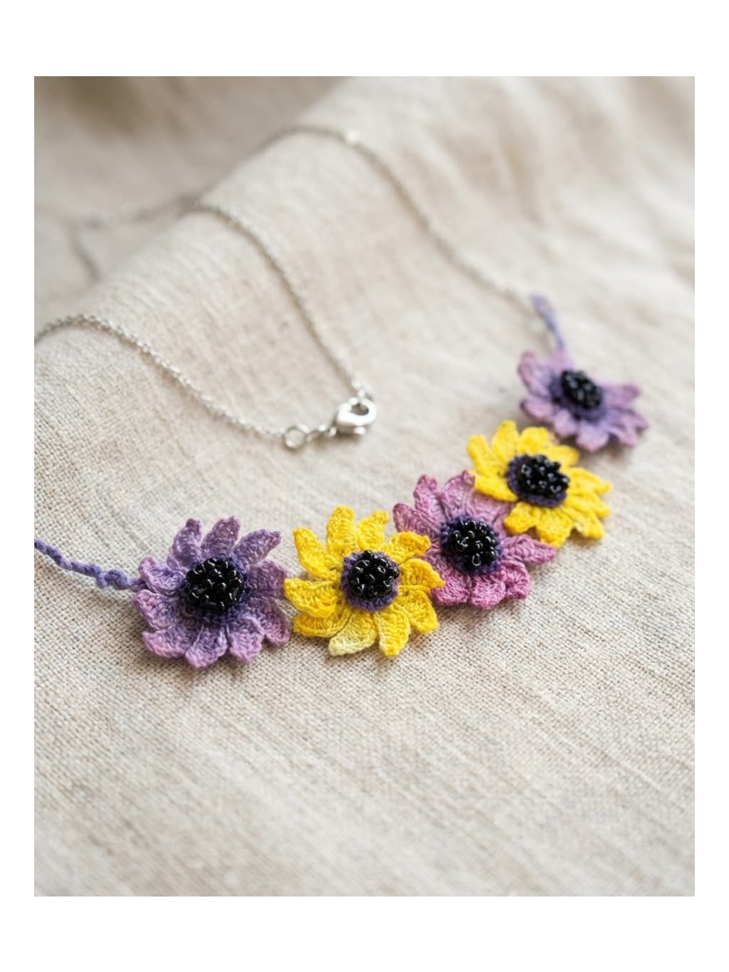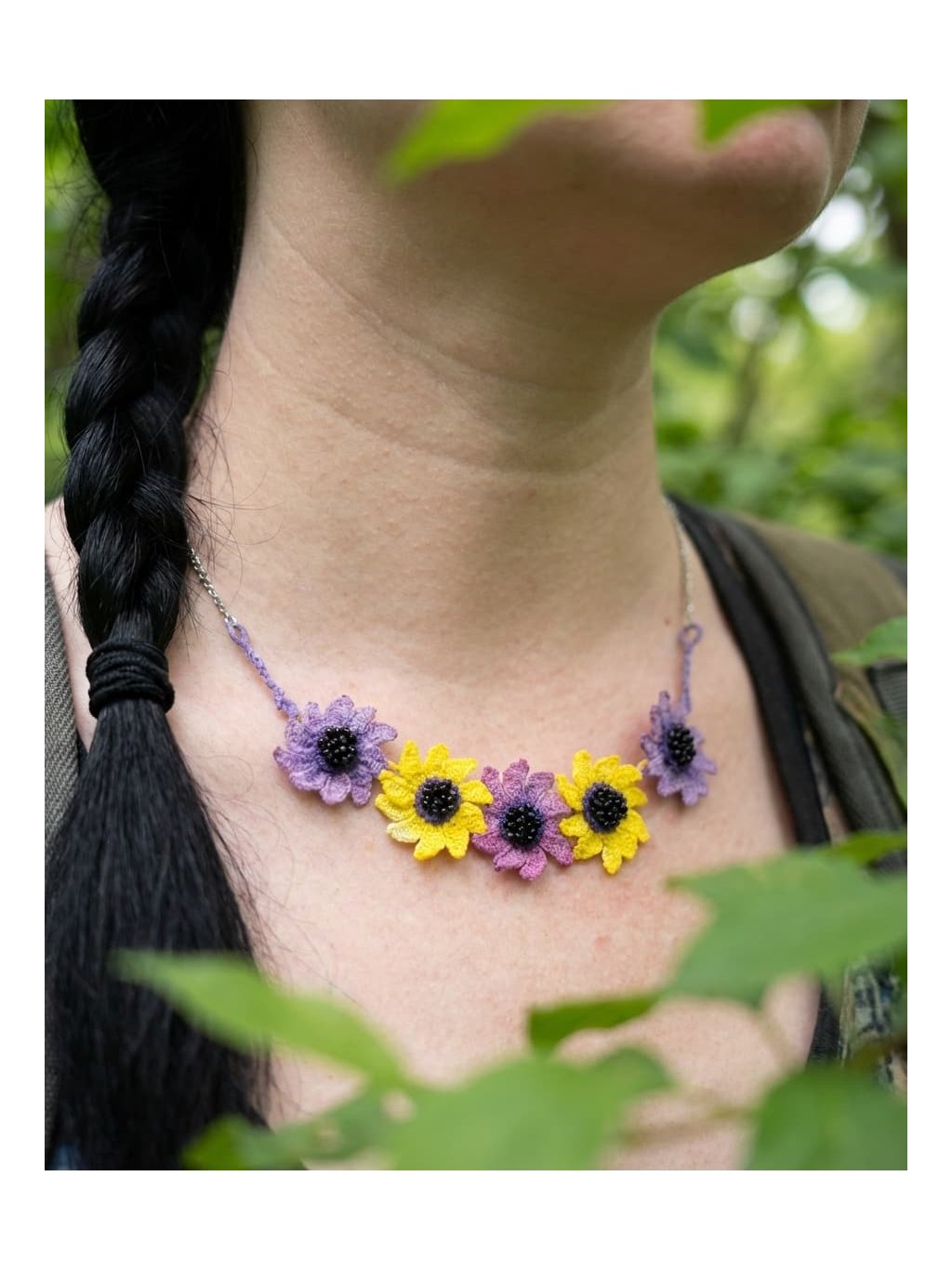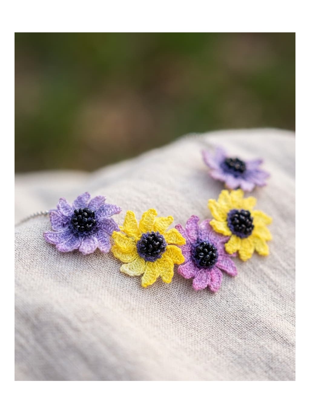 Květinový náhrdelník vznikl jako součást druhé fáze jarní kolekce, která připomíná období, kdy se po zimě začínáme znovu nadechovat, hrát si s barvami a dovolíme si mít radost z maličkostí.