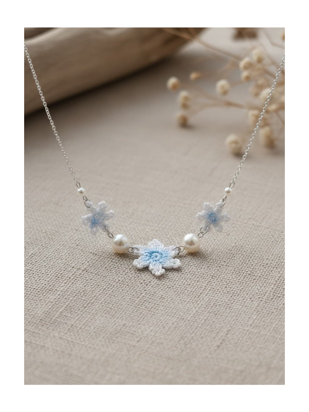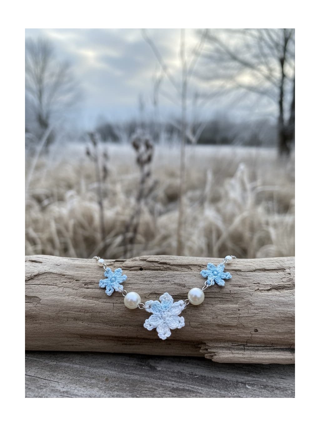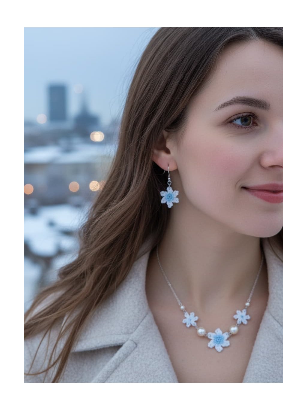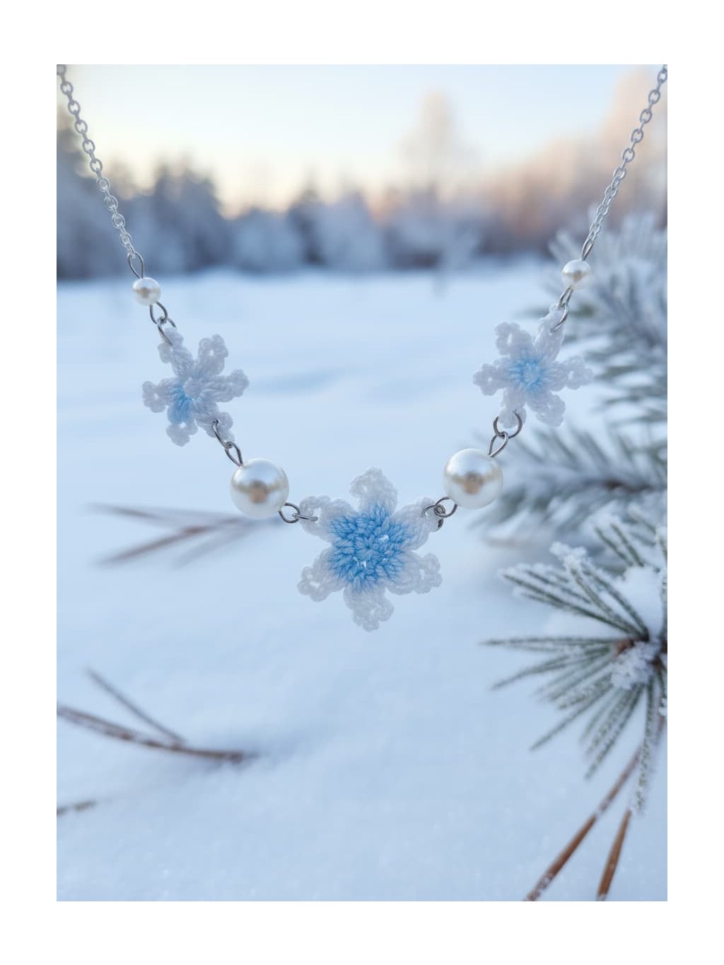 🎁Styling tip: Zkombinujte náhrdelník s bílou nebo krémovou halenkou s výstřihem do V a nechte ho spočinout přesně v nejhlubším bodě výstřihu. Přidejte jemný kardigan v odstínu ledově modré nebo šedé a vlasy si upravte do nízké drdolky s několika volnými pramínky u obličeje. Tento look dokonale podtrhne křehkou krásu náhrdelníku a vytvoří harmonii mezi vaší přirozenou elegancou a zimní poetikou šperku.