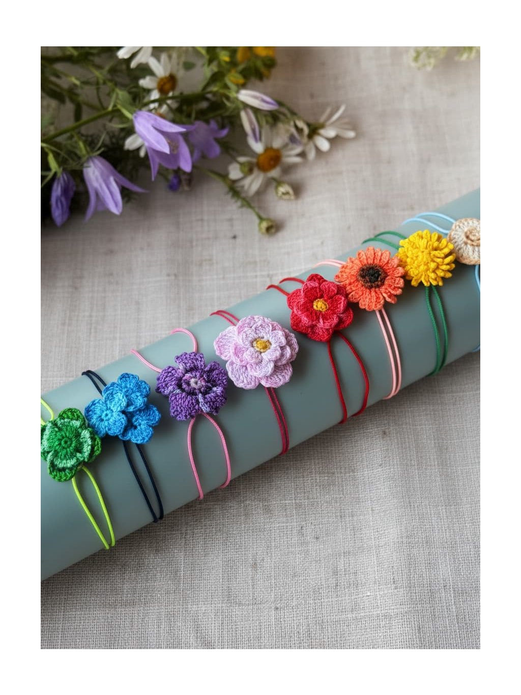 • Kvalita: zezadu jsou květy začištěny háčkovaným kolečkem, aby se vše začistilo a aby vám náramky vydržely napořád.