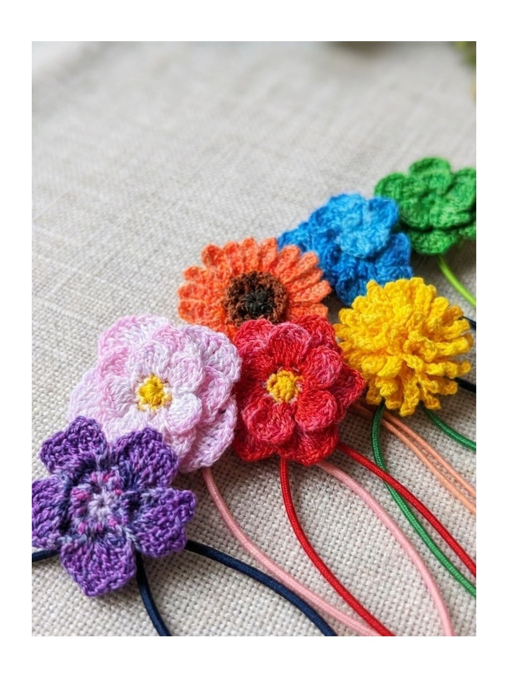 • Ručně háčkované květinky: květy háčkuji sama podle svých návodů a inspirace z přírody. Jsou opravdu jemně háčkované tenkou bavlnkou, aby byl tvar co nejvíce reálný. V ČR opravdu unikátní výroba šperků.