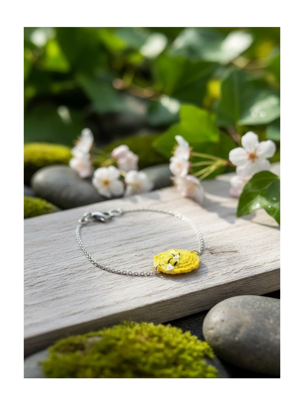 Ručně vytvořený náramek Zlatokřídlá vznikl v technice micro crochet s důrazem na detail a jemnost. Každý kousek je originál, který připomíná, že i to nejdrobnější může mít obrovský význam. Je talismanem pro ženy, které chtějí nosit kousek přírody a její síly každý den u sebe.