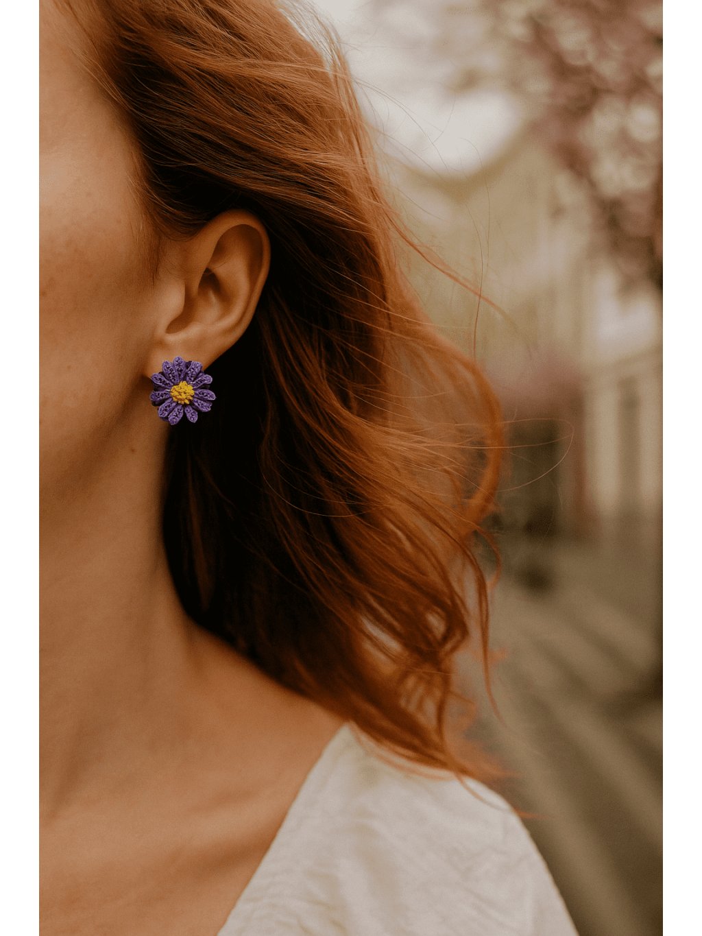 Ručně háčkované náušnice Astra – květina pro ženy narozené v září, symbol elegance, lásky a odvahy. Jemný šperk, který podtrhne Vaši jedinečnost.