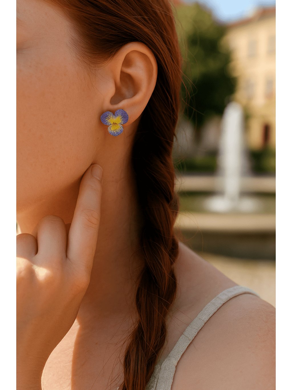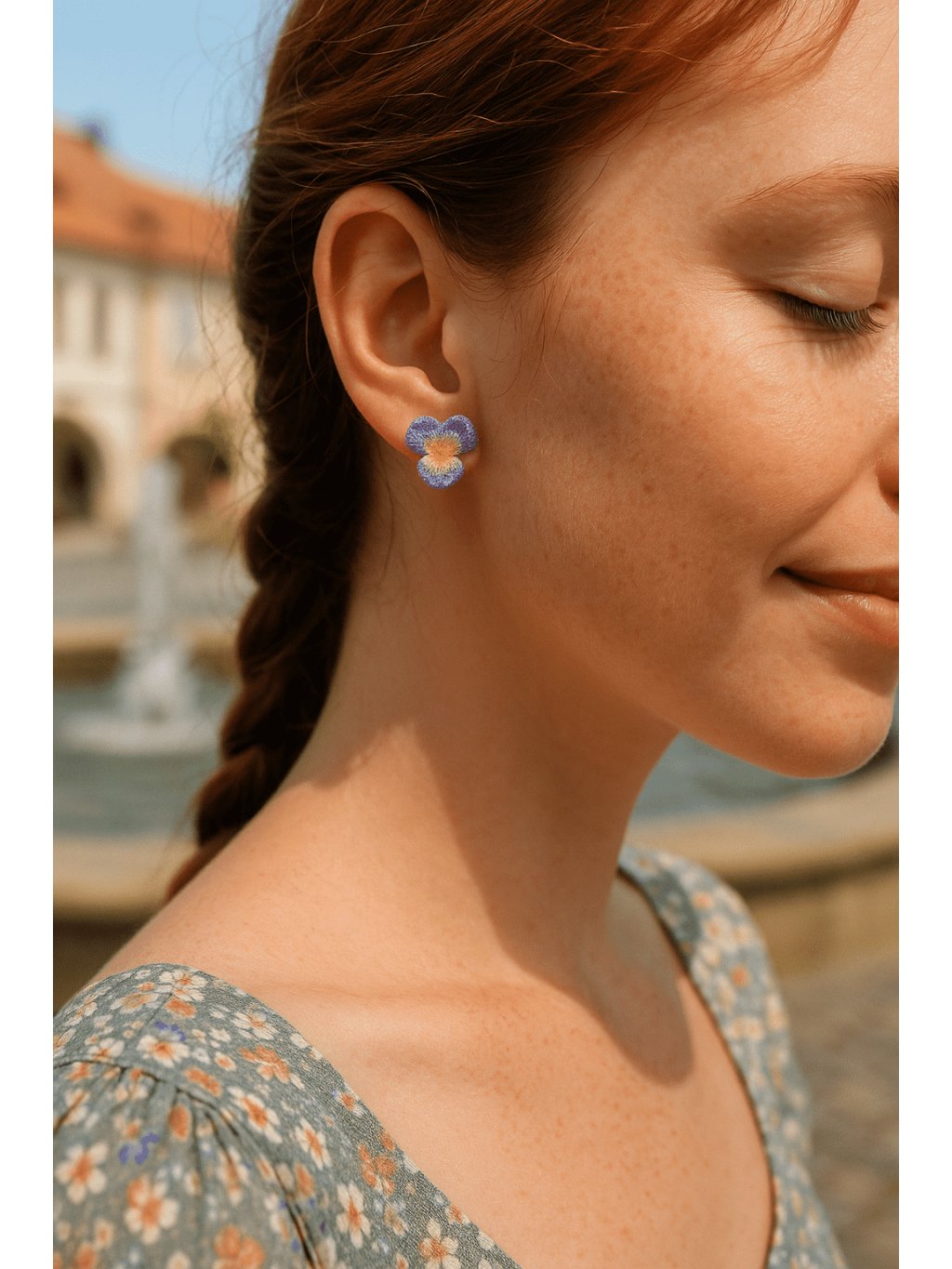 🎁Styling tip Náušnice macešky krásně vyniknou s jednobarevným oblečením – zkuste bílou halenku nebo jemné pastelové šaty, kde barvy květu zazáří. Skvěle se hodí na letní procházky i do práce, kde dodají vašemu stylu hravý, ale elegantní detail.