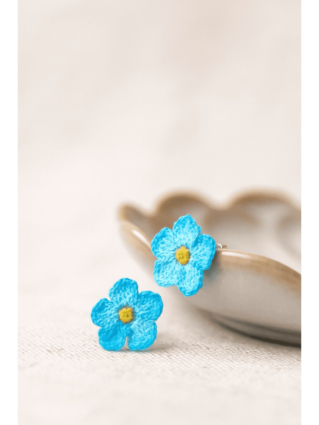Jemné náušnice inspirované květem pomněnky – symbolem věrnosti, lásky a vzpomínek, které nikdy nevyblednou. Ručně háčkované s něhou pro každodenní radost.