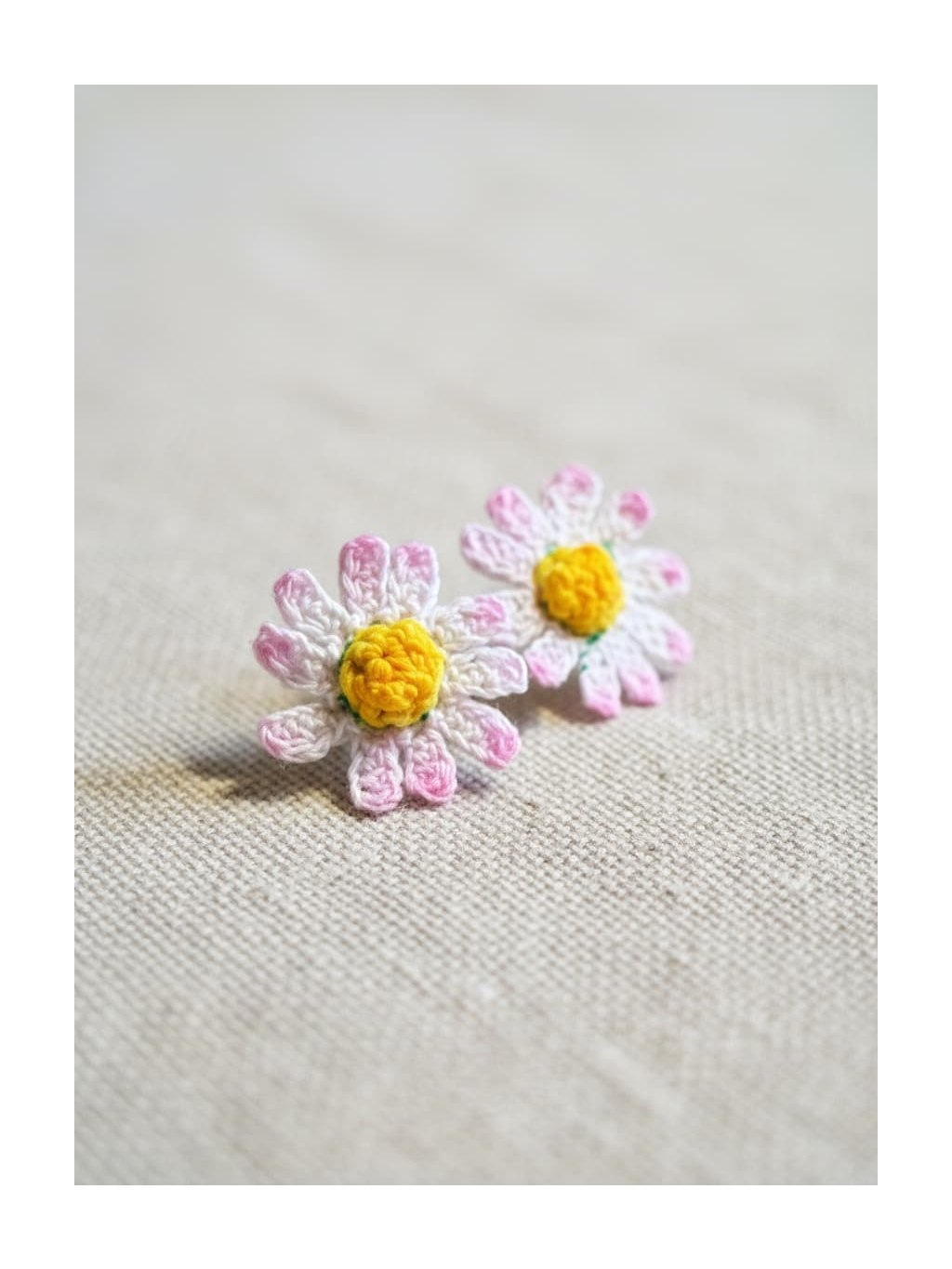 Náušnice inspirované sedmikráskou – květem čistoty, radosti a hravé něhy. Ručně háčkované pecky, které Vám vykouzlí úsměv každý den.