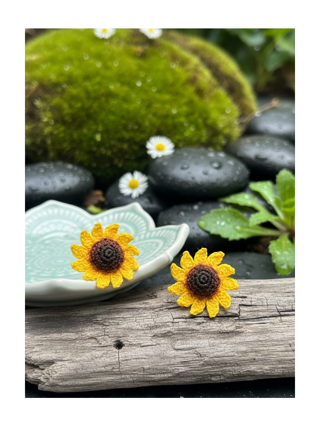 Ručně háčkované náušnice Slunečnice jsou tvořeny s jemností a láskou k detailu v technice micro crochet. Každý pár je originál, který do Vašeho života vnese hřejivou energii a připomínku, že i Vy máte svou vlastní zář.