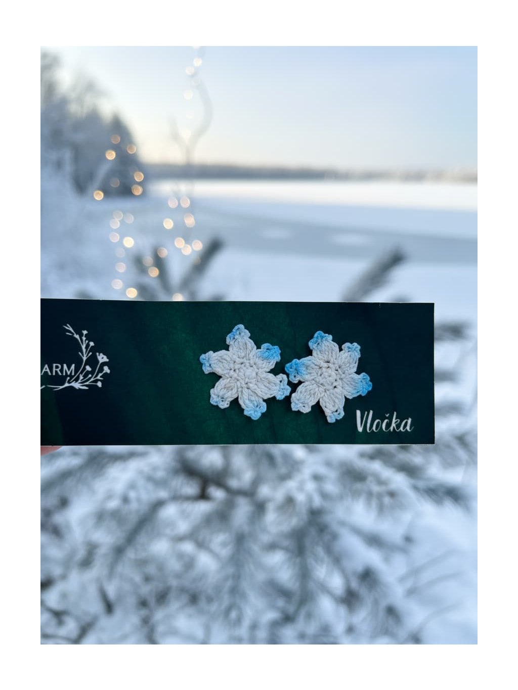 - Ručně háčkované vločky: vločky háčkuji sama podle svých návodů a inspirace z přírody. Jsou opravdu jemně háčkované tenkou bavlnkou, aby byl tvar co nejvíce reálný. V ČR opravdu unikátní výroba šperků.