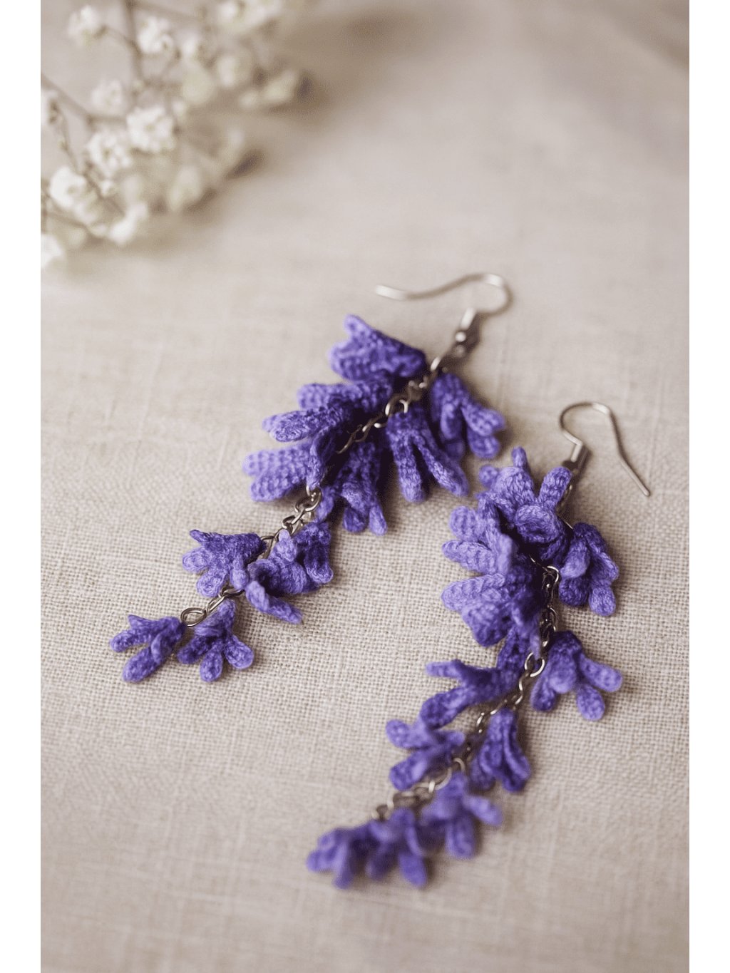 Visací náušnice Šeřík jsou tvořeny s láskou v technice micro crochet. Jemně se pohupují při každém kroku a svým tvarem i barvou připomínají hrozny šeříkových květů, které vždy znovu a znovu uchvátí svou krásou a jemností. Každý pár je originál, který vznikl s citem a péčí, aby se stal talismanem ženské něhy a elegance.