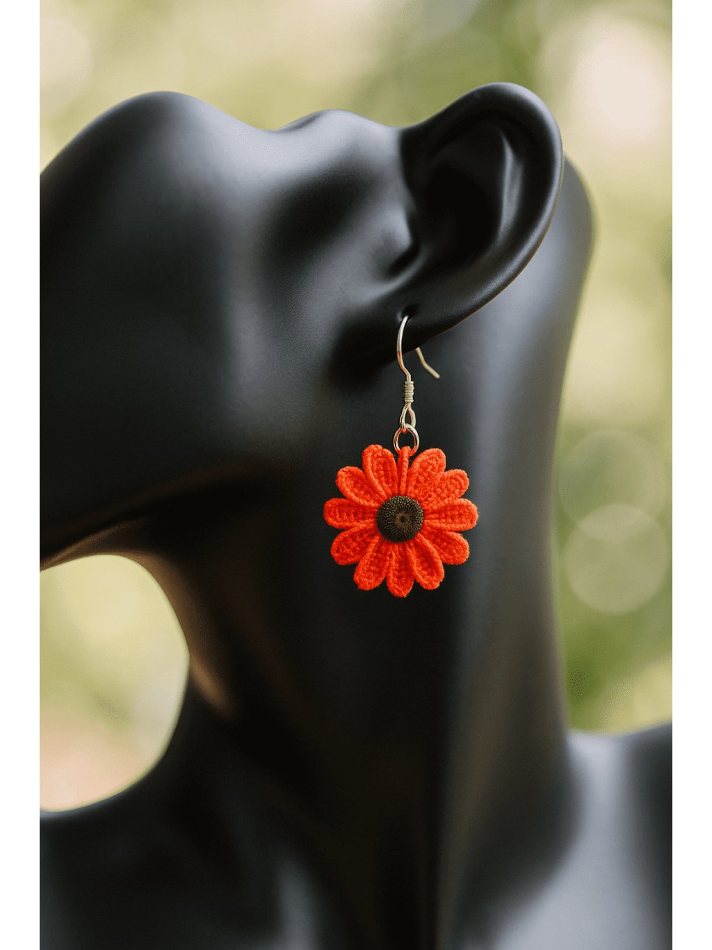 Visací náušnice Gerbera Radosti jsou ručně háčkované v technice micro crochet s důrazem na každý detail. Jemně se pohupují při pohybu a přitahují pozornost svým tvarem i barvou. Působí jako drobná slunce, která Vám budou připomínat, že i v obyčejném dni se skrývá krása a světlo.