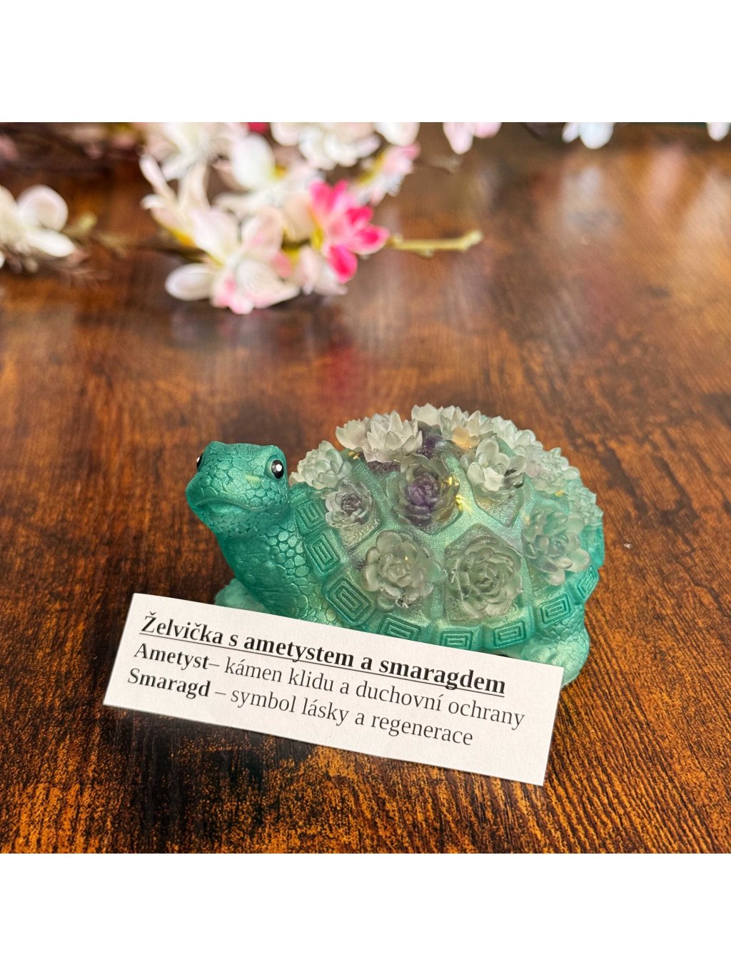 Želvička z pryskyřice s kamenem – ochranný talisman