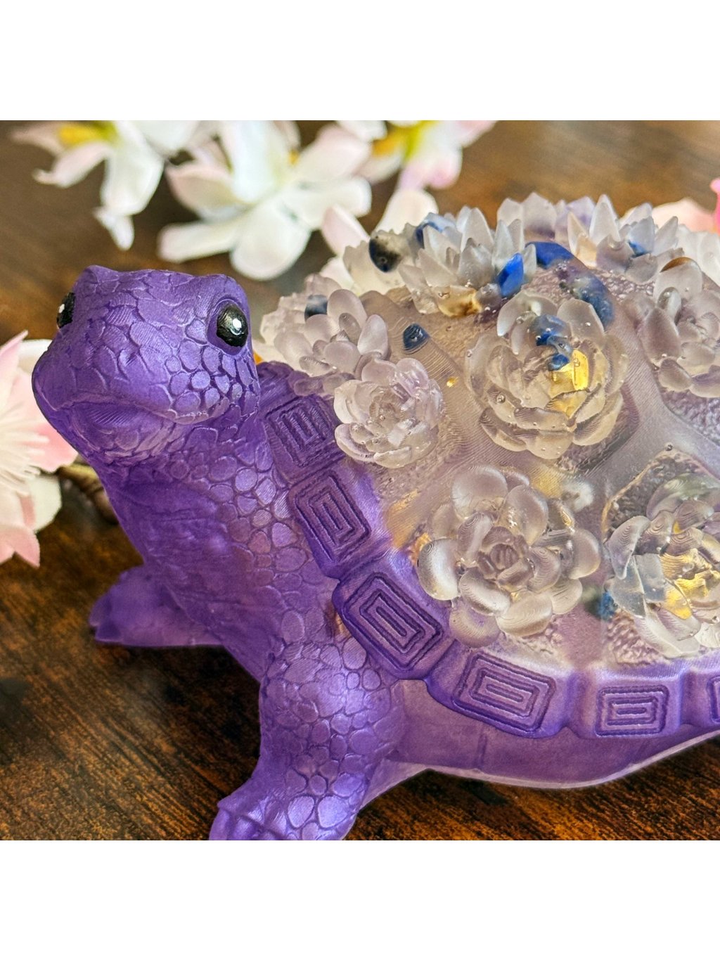 Želva z pryskyřice s ukrytým drahým kamenem – talisman ochrany, klidu a síly. Symbol dlouhověkosti a stability pro váš domov i duši.
