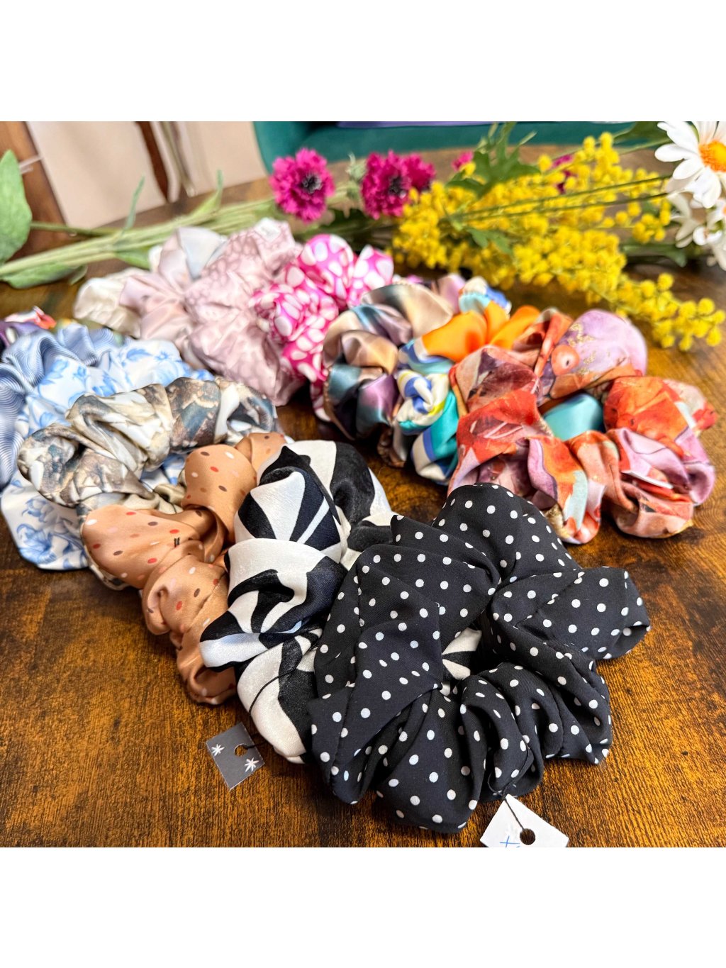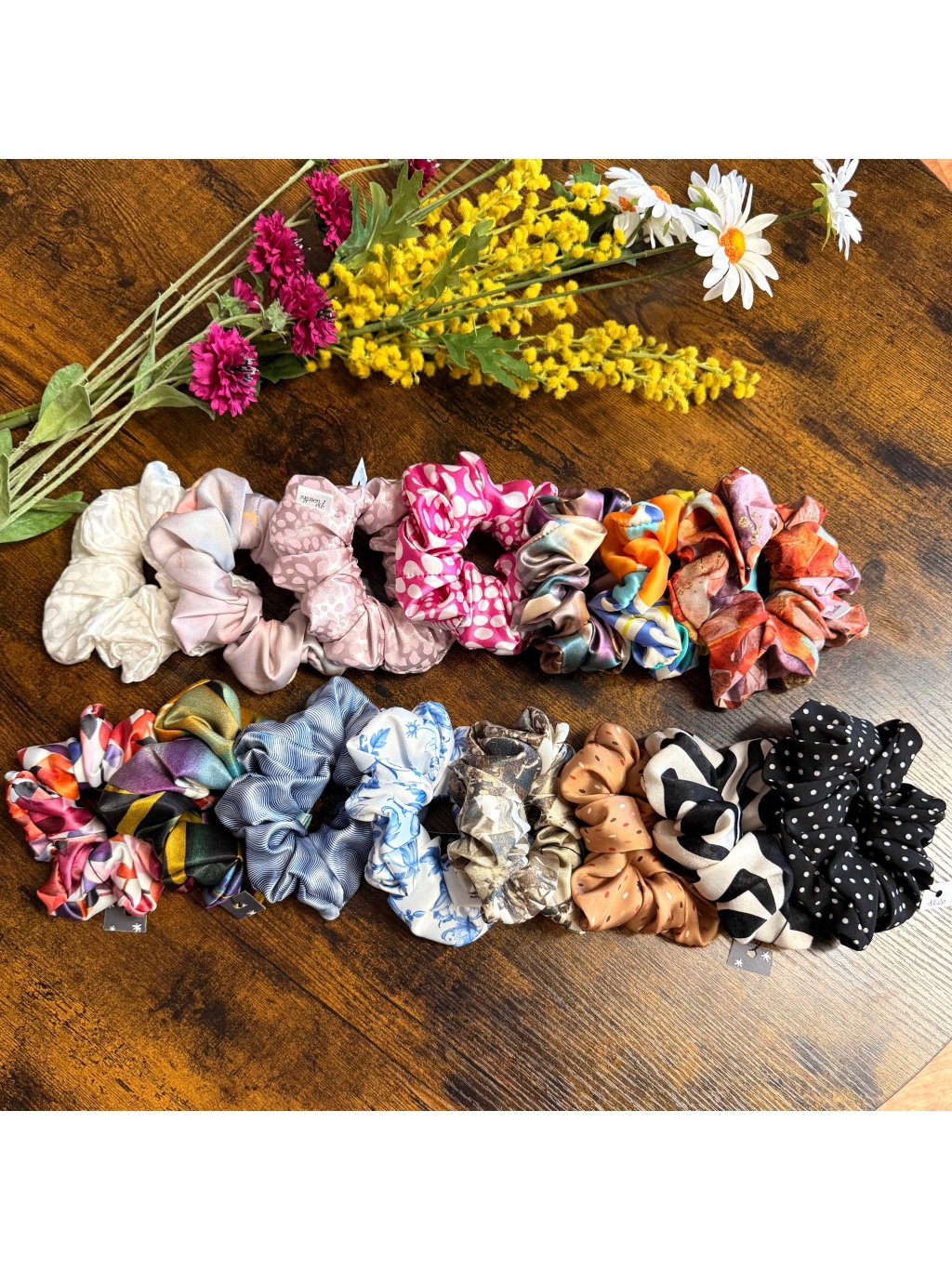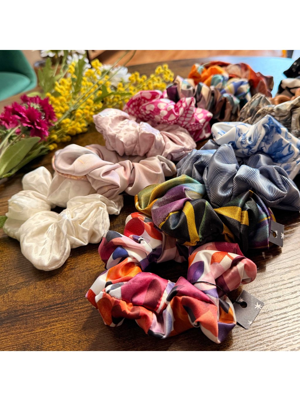 A ty barvy! Každá scrunchie má svůj příběh – jemné pastelové tóny, syté barvy, přírodní vzory… vyberte si tu, která vás nejvíc vystihuje.
