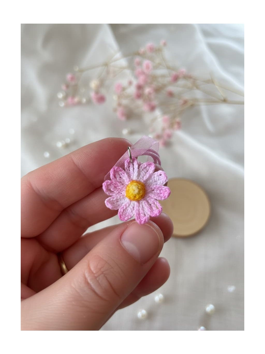• Ručně háčkované květinky: květy háčkuji sama podle svých návodů a inspirace z přírody. Jsou opravdu jemně háčkované tenkou bavlnkou, aby byl tvar co nejvíce reálný. V ČR opravdu unikátní výroba šperků.