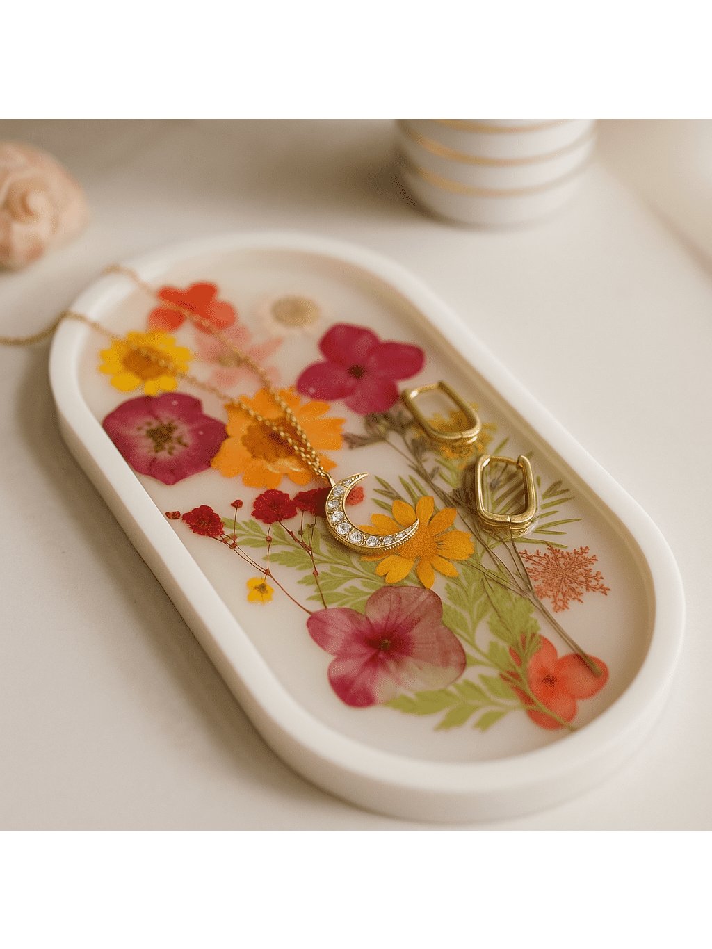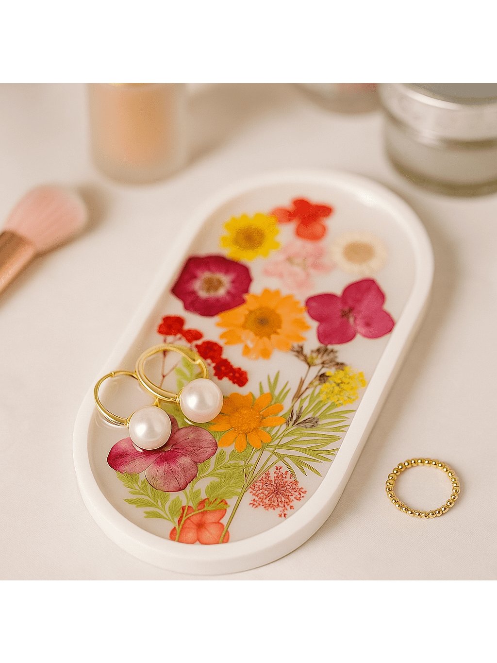 Objevte kouzlo přírody ukryté v kousku pryskyřice. Tyto ručně vyráběné tácky s usušenými květy jsou jako malá umělecká díla – jemné, barevné a plné života. Každý tácek je unikátní, protože žádný květ nikdy není stejný.