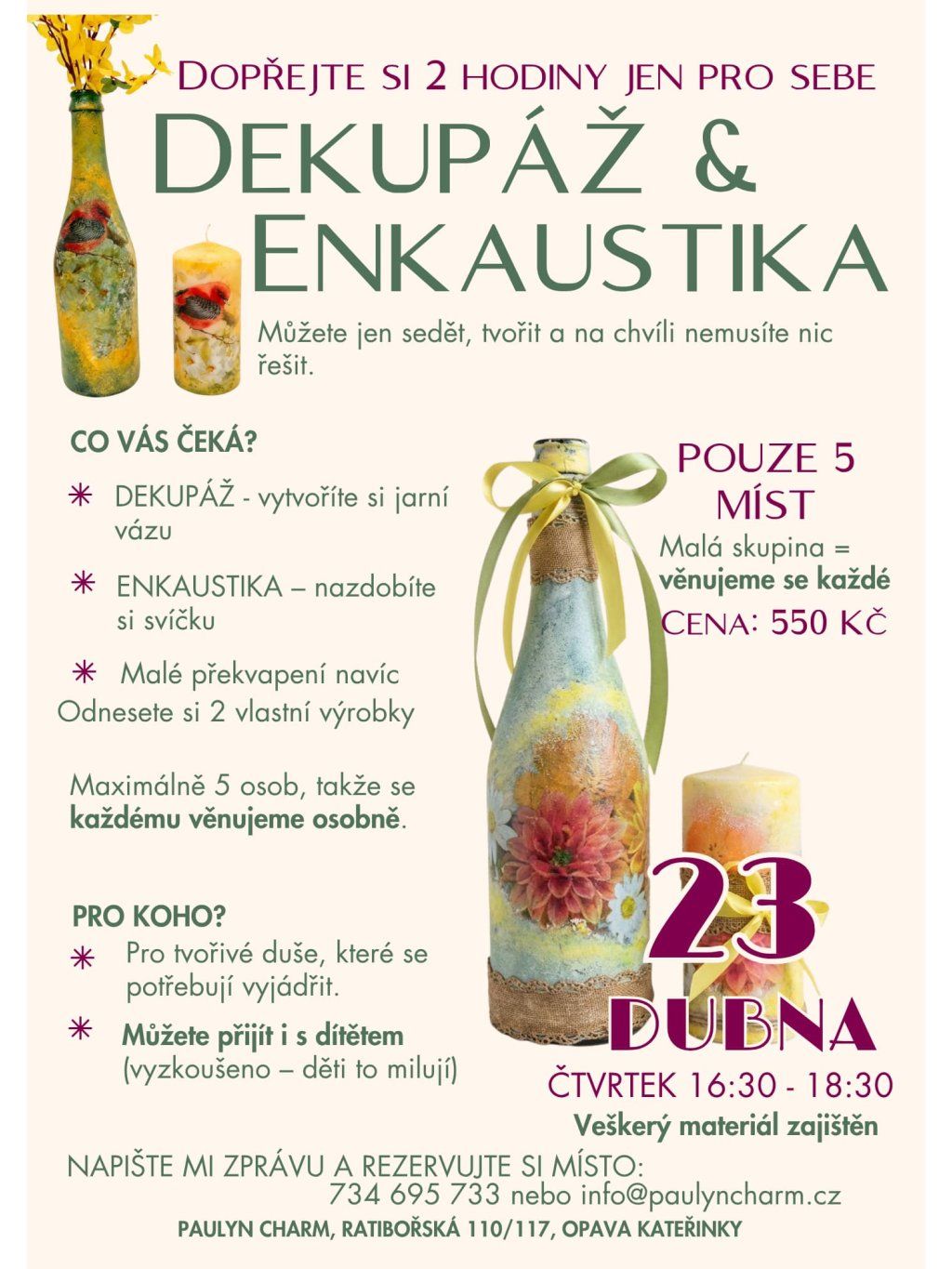 KREATIVNÍ WORKSHOP: Dekupáž & Enkaustika Opava